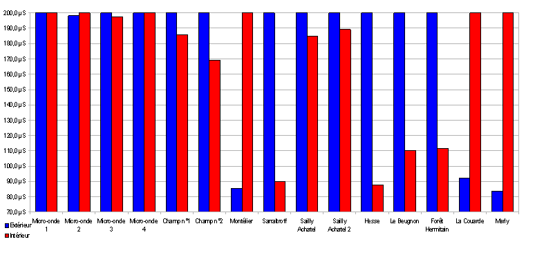 La valeurs maxi pour chaque cas est portée à 200 μS, l'autre étant recalculée afin d'obtenir le même rapport : Maxi/Mini ou Intérieur/Extérieur.