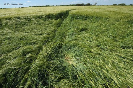 Je suis déjà allé sur des formations qui n'avaient que quelques heures et les tiges étaient complètement aplaties..... comme dans de nombreuses formations, ici ce n'est pas le cas. Il semble que cette année il y ait moins de crop circles, est-ce