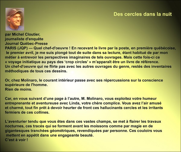 Bonjour à tous, nous sommes allés mon mari et moi ,voir hier soir le crop circle de Marly et fait qq photos,nous habitons à 20 mns. Un grand moment pour nous. Il est magnifique et à l'intérieur alors que je suis hyper frileuse et qu'il ne faisait pas chaud du tout, je n'ai ressenti le froid de l'atmosphère(sans doute l'émotion qui me submergeait..).Nous sommes allés ensuite Sailly mais celui ci "s'effac" cependant on se rend compte de sa beauté .