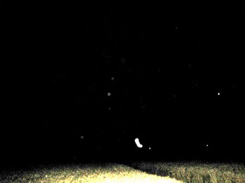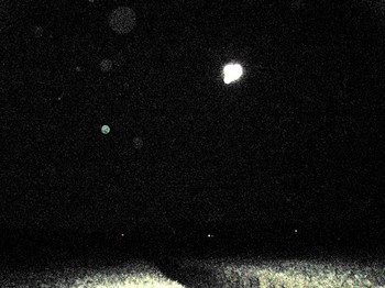 En utilisant la fonction contraste sur le logiciel photoshop, nous apercevrons le champ et les points lumineux fixes à l'horizon. La boule lumineuse par son mouvement a dessiné ou fait apparaître l'image symbolique d'un "ange".