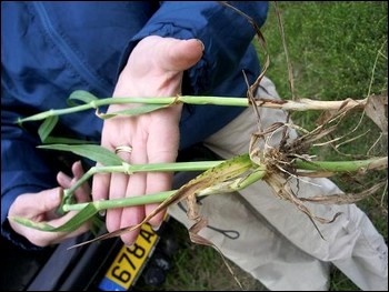 Apparemment les blés ne sont pas cassés mais pliés au premier noeud