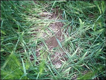 *Olivier *- Précisément, il s’agit d’orge. Les tiges étaient simplement brossées, absolument pas écrasées. C’est impossible que cela ait été fait avec des planches. Les seuls endroits aplatis l’avaient été par la gendarmerie, arrivée avant nous, et c’était uniquement au bord du chemin central.