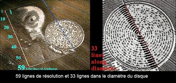 - Une image circulaire comme un disque laser, avec 33 lignes, contenant un message pour l’humanité.