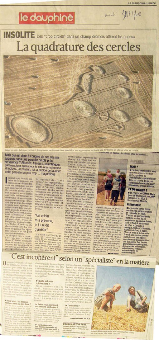 Pour une fois qu'on vous demande votre avis dans le journal du Dauphiné à propos des crop circles et de l'article concernant Umberto, n'hésitez pas, les détracteurs, eux ne vont pas se gêner.
