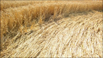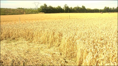 Gros plan sur une tige de blé qui n'a pas été cassée mais pliée
