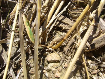 Deuxième indice. On retrouve des tiges pliées à la base et non cassées. Cela devient intéressant. (voir photo)