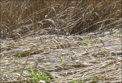 Le plus étonnant était la présence régulière, d'épis non couchés, ils étaient intacts et raides comme un bâton au milieu des autres complètement aplatis au sol, il y en avait dans tous les cercles et en grand nombre, de plus cela faisait penser à des poils, de ce jours mon intérêt grandissait et j'allais passer tous les jours sur les lieux pour trouver des réponses!