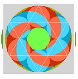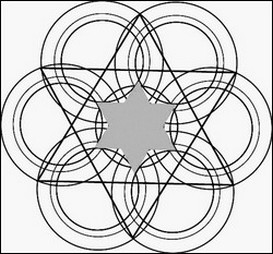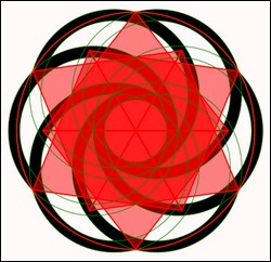 Le cercle contient la fleur de vie, l'unité, l'étoile à 6 branches.