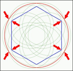 Si à partir de l' hexagone vous dessinez un carré, en faisant la synthèse du carré et du cercle vous découvrirez les proportions de la Grande Pyramide. A partir de là on peut la faire tourner.
