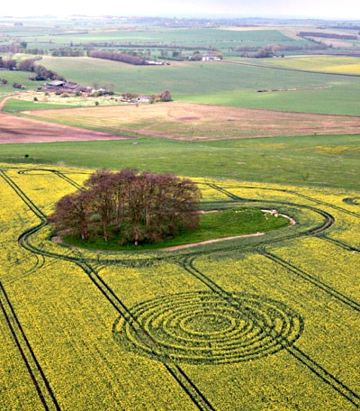 Avec une planche tout serait écrasé et la tige debout n'aurait pas été épargnée. En 2007 un crop circle est apparu et chose extraordinaire et pleine d'humour, une tige sur deux était pliée. Le 15 avril 2007 à côté du château d’Oliver prés de Devizes dans le Wiltshire, vers midi un merveilleux agroglyphe dans un champ de colza .
